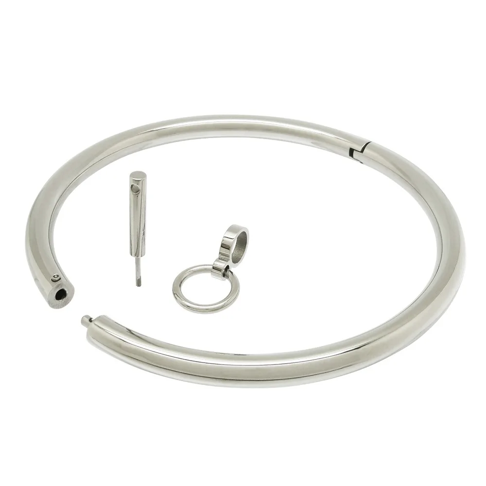 ACECHANNEL Colar Brilhante Aço Inoxidável Gargantilha Slave Collar Lockable