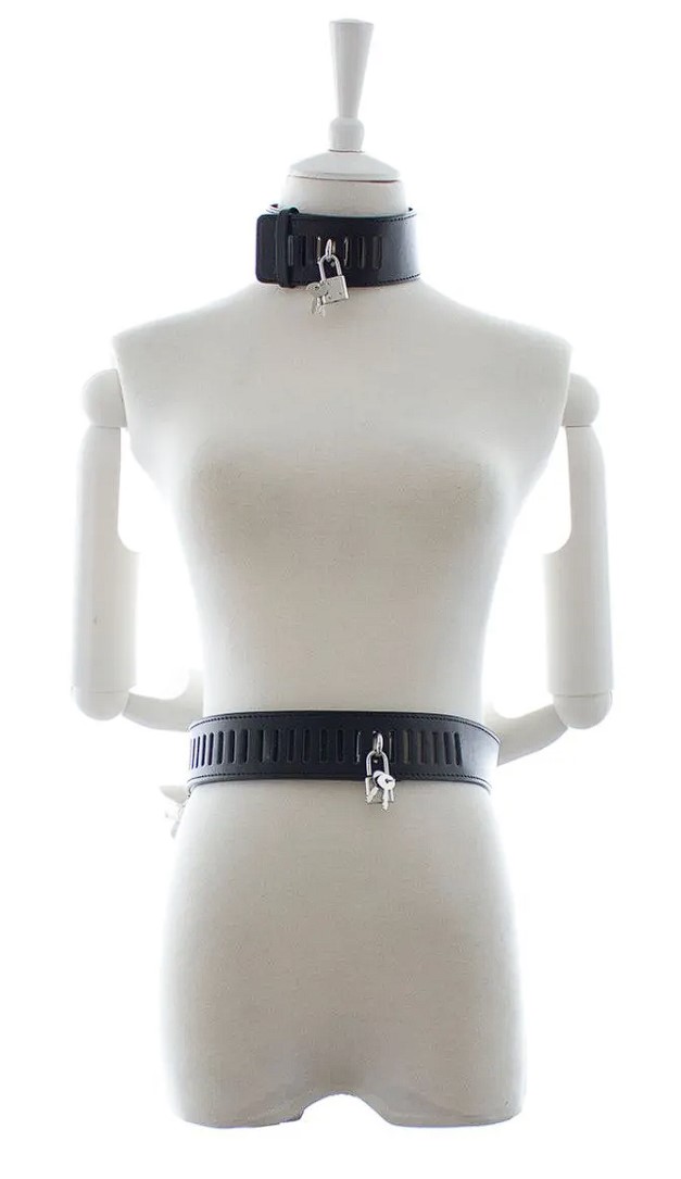 Acessório Braço De Couro Algemas Pescoço Colar ArmBinder Bondage