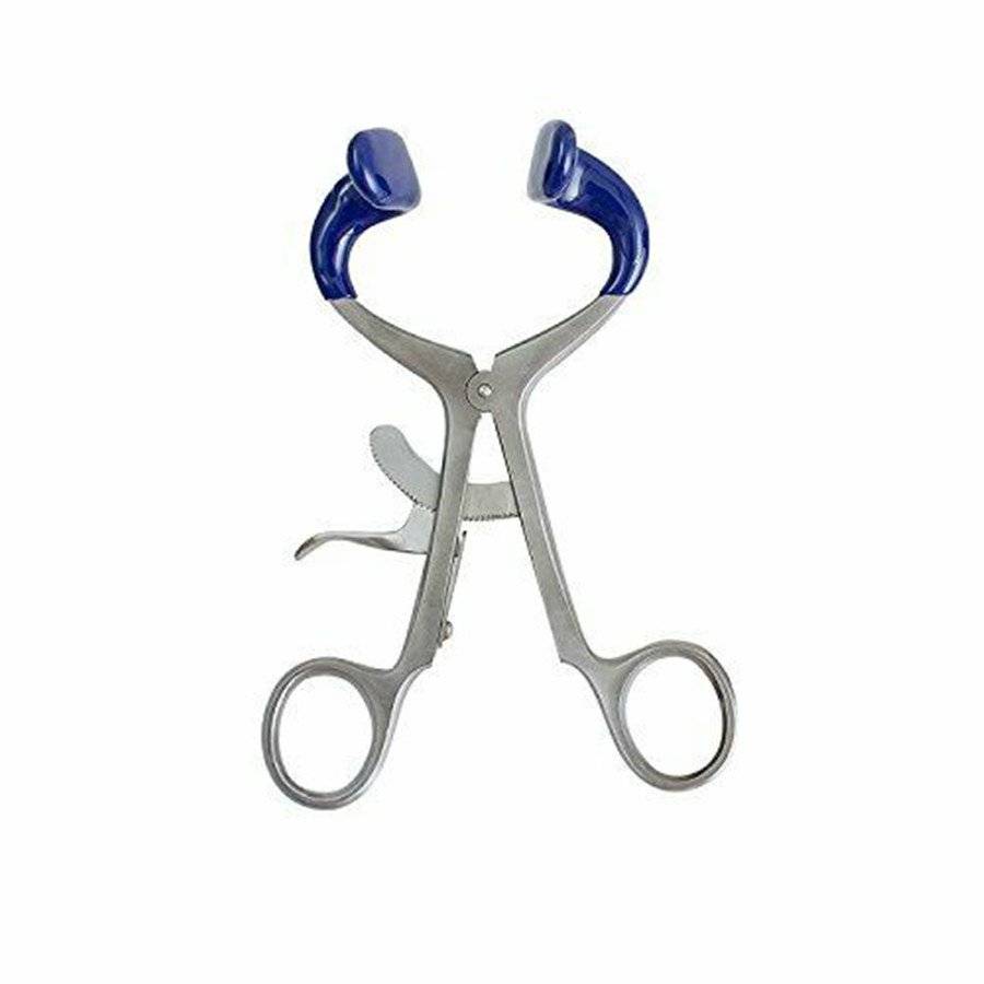 Esta ferramenta é utilizada para abrir os lábios. Feita em aço inoxidável, pode passar por processos de esterilização comuns. Possui um sistema de travas, com gatilho e molas, que podem ser reguladas para cada tamanho de lábio.