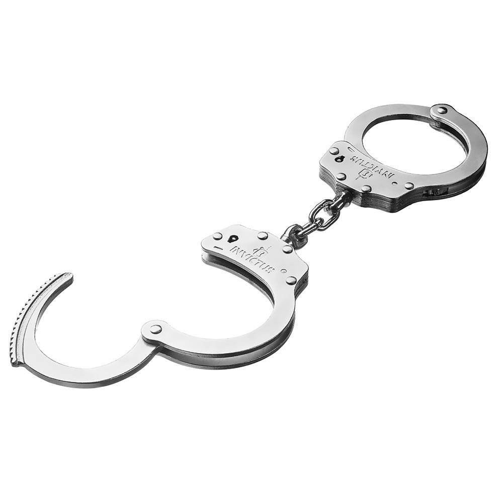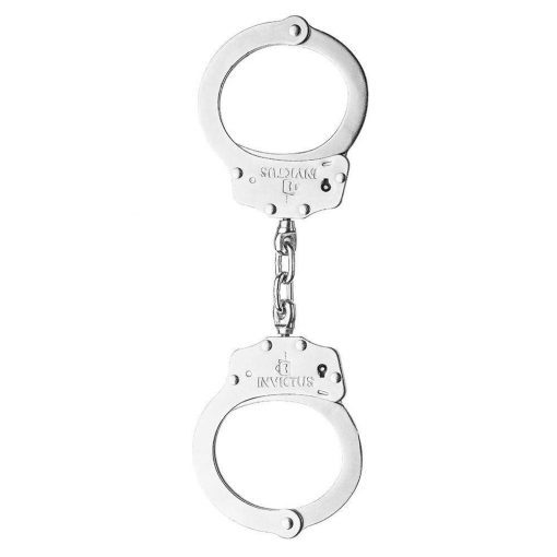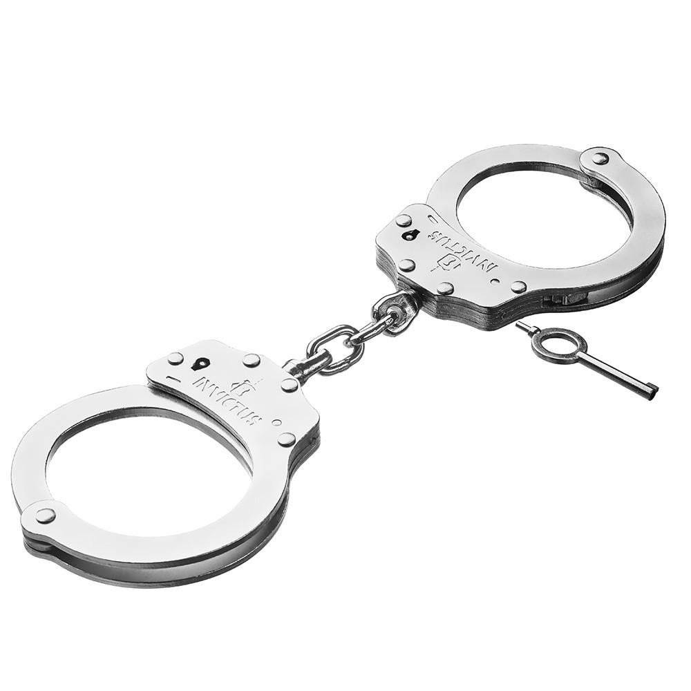 A Algema de Corrente INVICTUS é um modelo de algema de pulso que possui ligação através de elos de corrente e sistema de fechamento dentado por catracas. O modelo conta ainda com mecanismo de segurança para evitar lesão no uso, acionado pela parte traseira da chave do produto. Fabricada em aço carbono AISI 1020, tem tratamento da superfície preto ou niquelado fosco prata para adquirir a característica de antirreflexo. Acompanha duas chaves em aço carbono AISI 1020 na cor da algema.