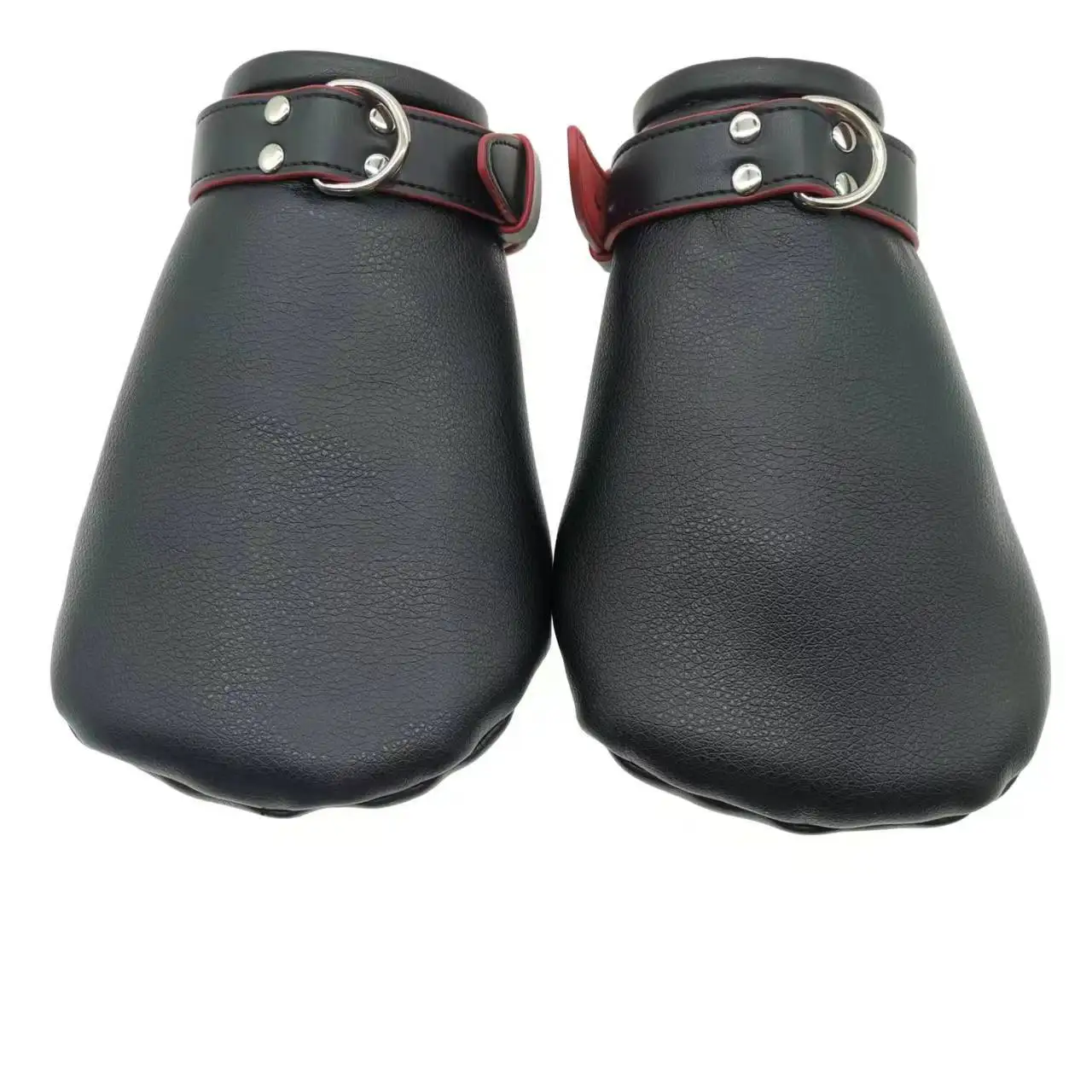 Feitas em material resistente e acolchoado, oferecem segurança e conforto durante o uso prolongado. Seu design sem dedos impede o uso das mãos, promovendo total entrega e realismo na encenação. Com fechamento ajustável, garantem um encaixe perfeito para diferentes tamanhos.