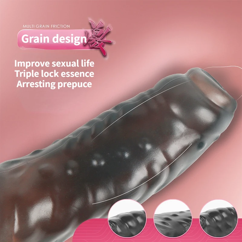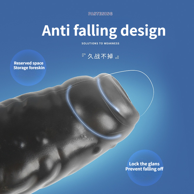 Design que se fixa na cabeça do pênis evitando a manga peniana escorregar.