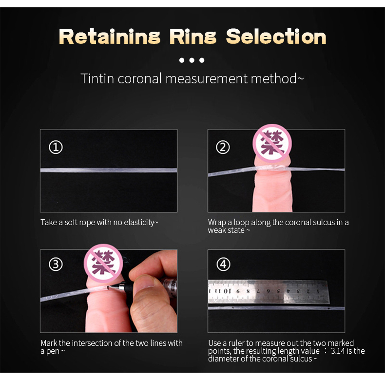 ③ O anel de é inserido na área coronal da cabeça do pênis em um estado flácido