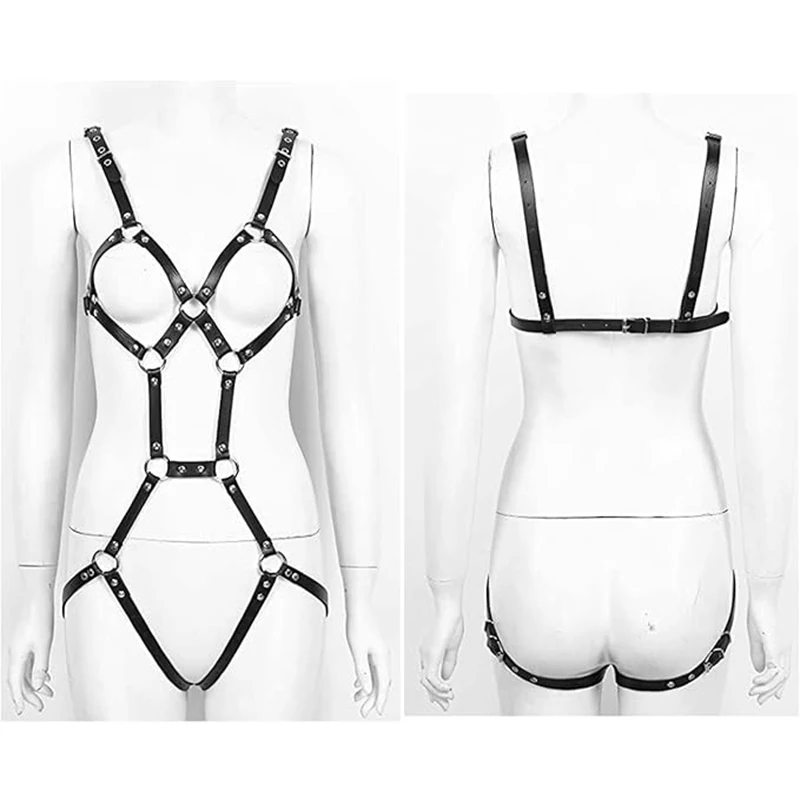 Arnês Corporal Feminino BDSM com Cinto de Couro Ajustável e Liga de Pernas