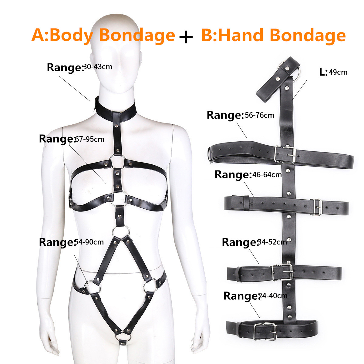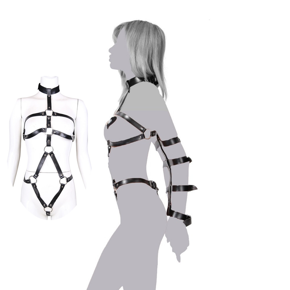 Cintas e correias de couro para arnês body bondage e restrição para braços. Ajustáveis.