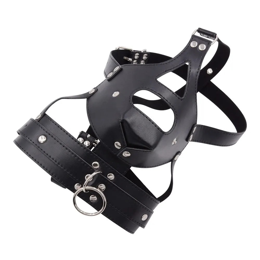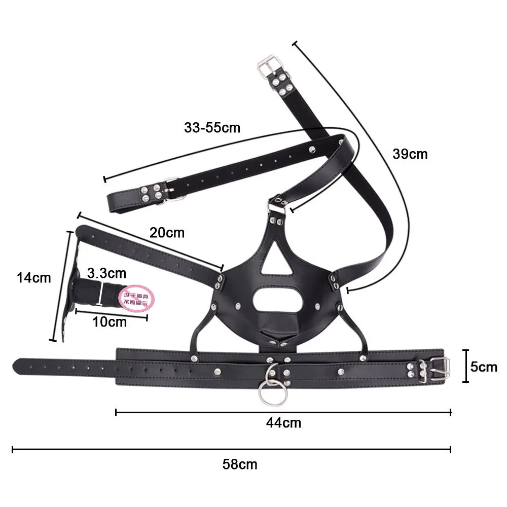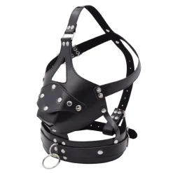 Com um design envolvente e ajustável, ele combina a estética impactante de um arnês facial com a funcionalidade de uma mordaça em formato de pênis, proporcionando restrição e controle máximos.