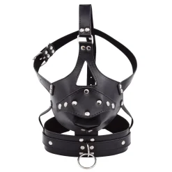 Arnês de Couro Máscara Mordaça Pênis Leather Mouth Gag Ring: um acessório projetado para experiências intensas de dominação e submissão.