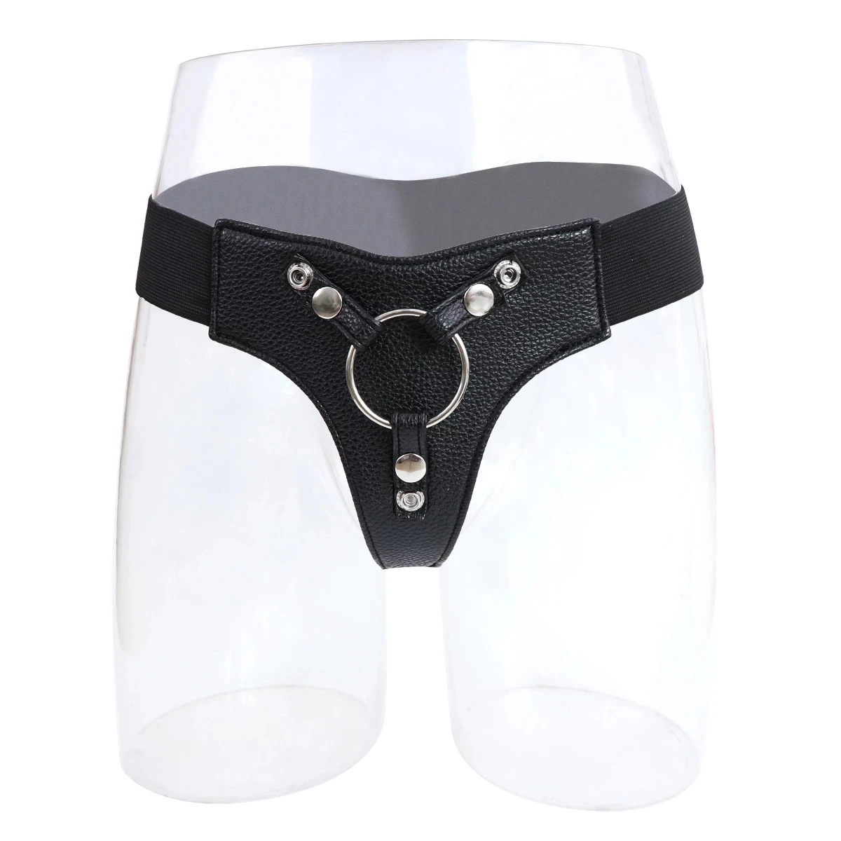 Arnês em couro sintético ajustável – suporte strapon com anel metálico
