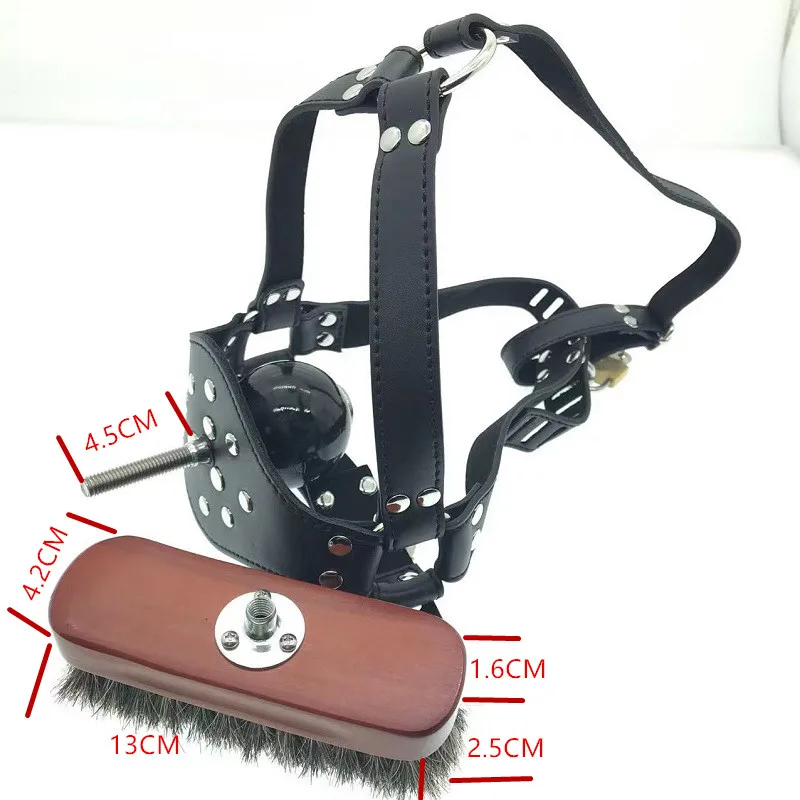 Arnês Mordaça Esfregão Head Harness Slave Polish Brush: Explore limites e intensifique a conexão com este conjunto projetado para aqueles que desejam adicionar um toque de ousadia às suas experiências de BDSM.