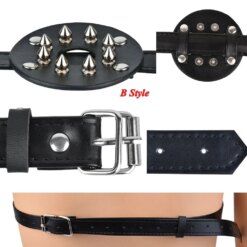 Com acabamento em spikes e detalhes cravejados, o visual é marcante e irresistível. Os prendedores de mamilo com corrente metálica adicionam um toque de tensão erótica, tornando a experiência ainda mais intensa.