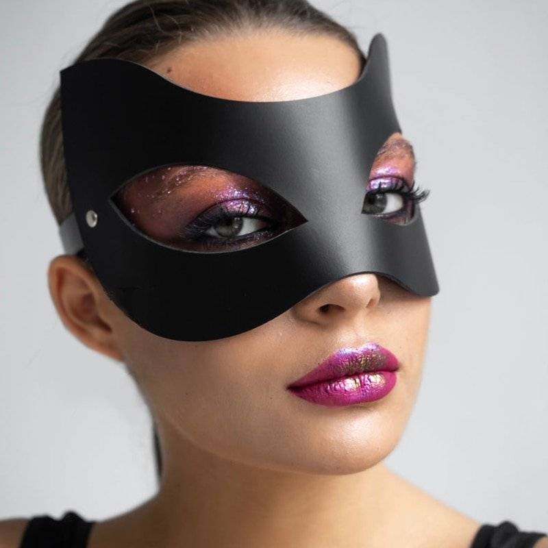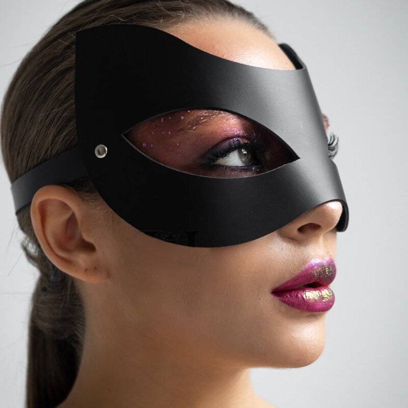 4 opções – máscaras, venda para olhos e uma corrente para pescoço. Feitas com couro sintético, para fantasias ou fetiches como BDSM e vestuário arnês.