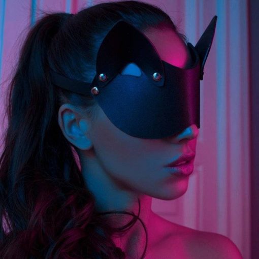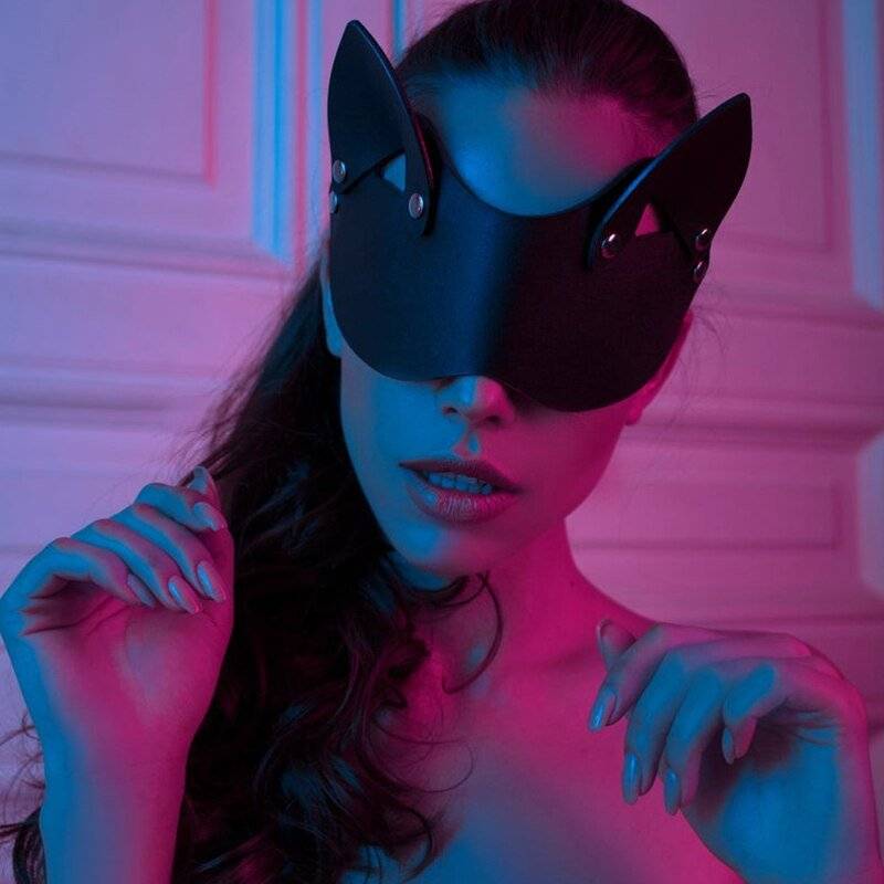 Máscara fetiche estilo mulher gato em couro para mulheres