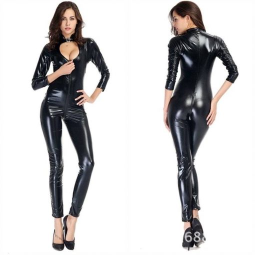 Body Catsuit PVC Látex BodySuit Frente Zíper