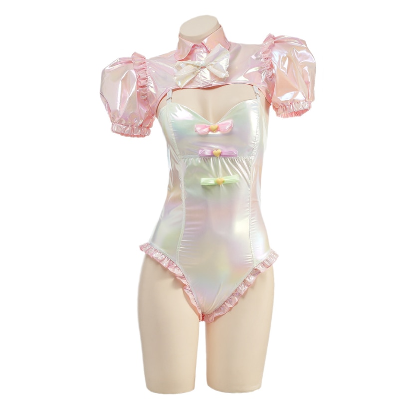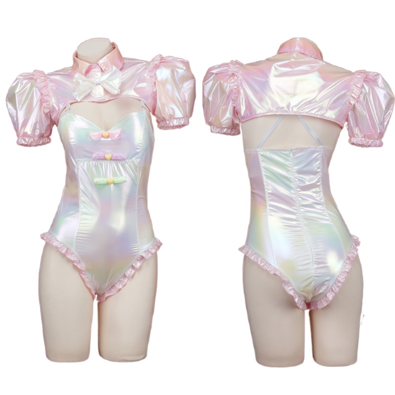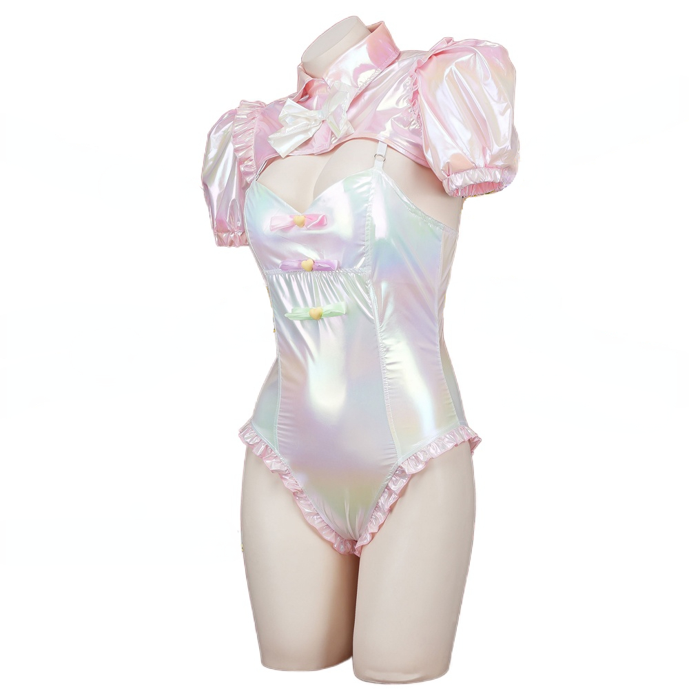 Maio Brilhante Estilo Pijama Bodysuit com top. Cosplay, fantasia.