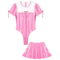 Combinando uma linha e saia queimada, aparência brilhante. Tanto o bodysuit quanto a saia têm fechamento com zíper para facilitar o curativo.