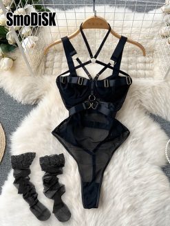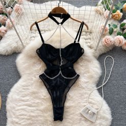 Bodysuit de Malha Erótica Feminina Macacão de Renda Sexy Lace