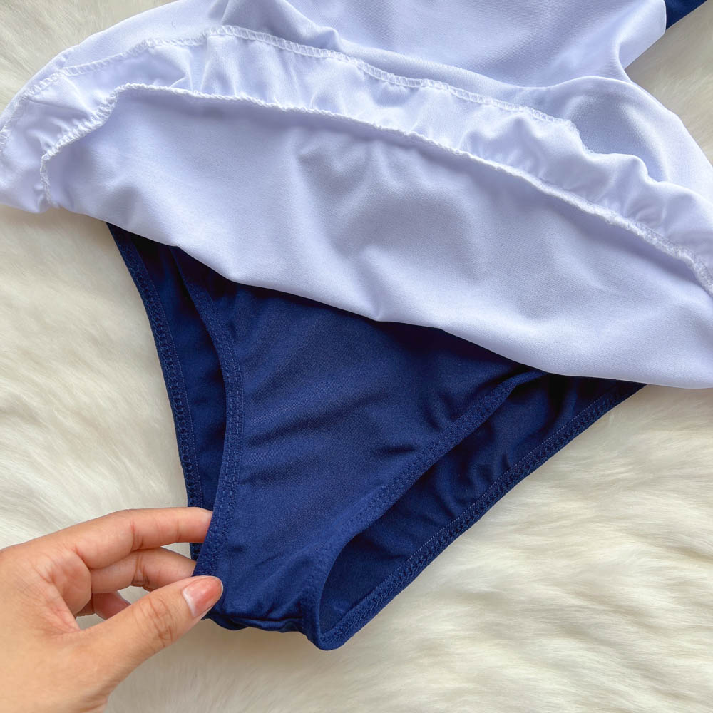 Os tecidos e materiais são feitos em poliéster e elastano. São dois tamanhos disponíveis, M e L (Grande).