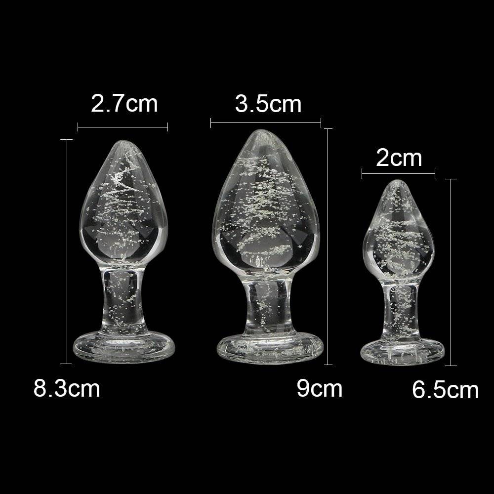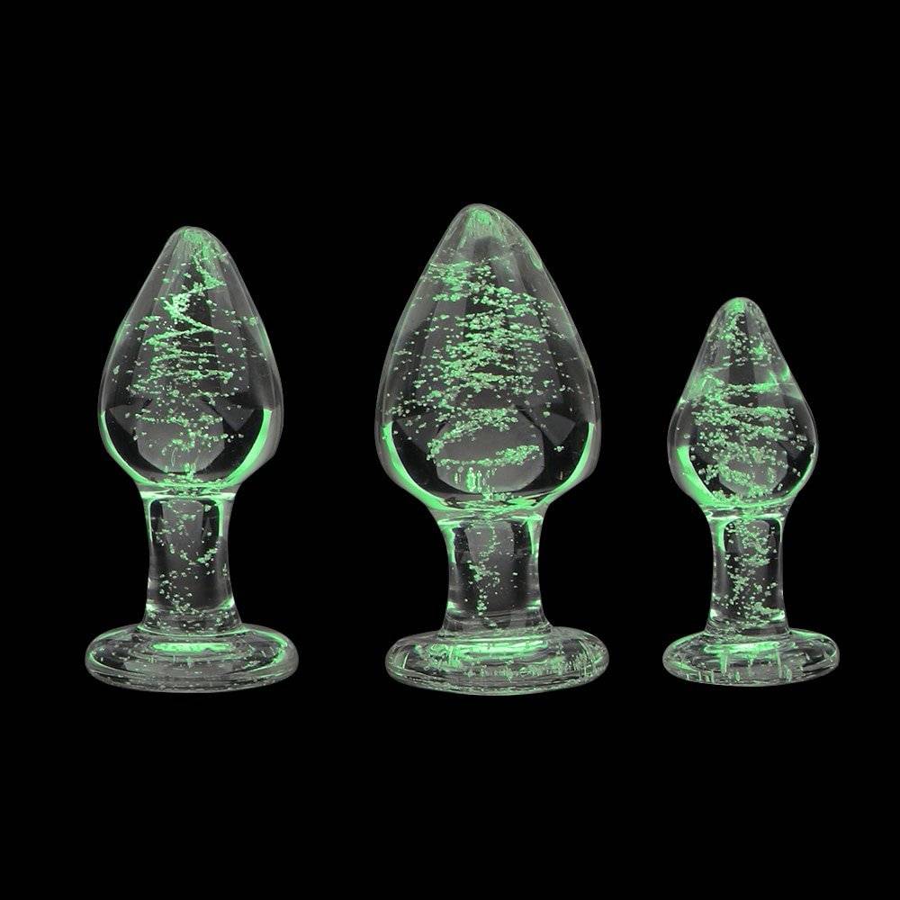 Plug anal de vidro com partículas luminosas