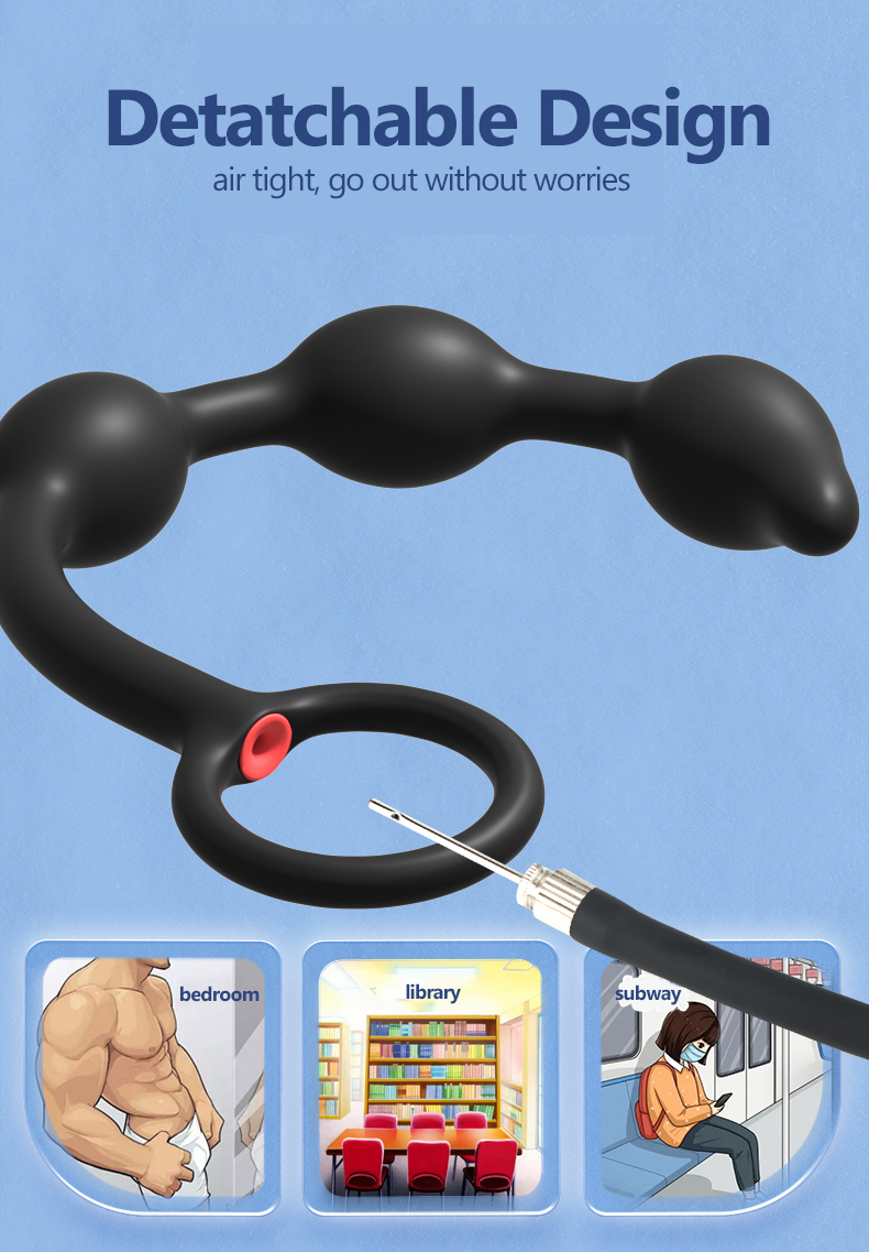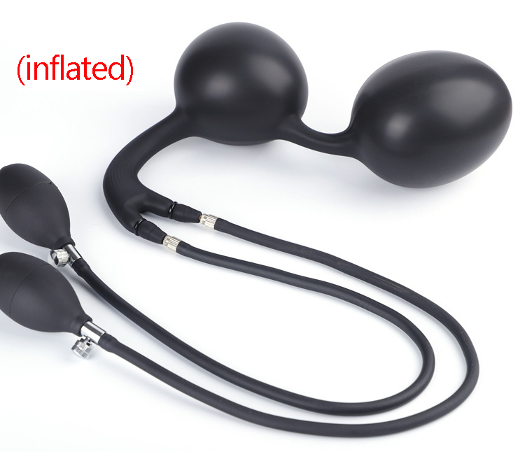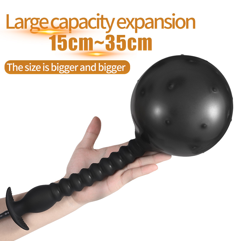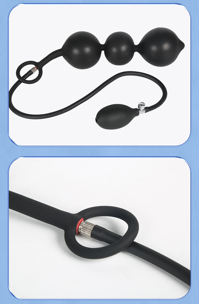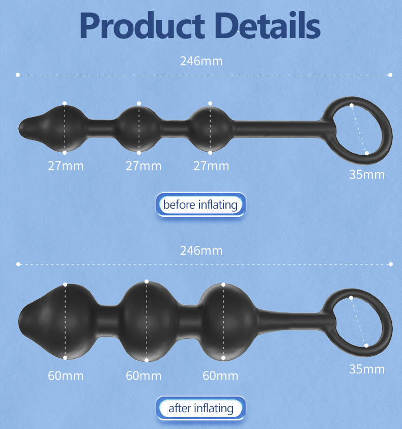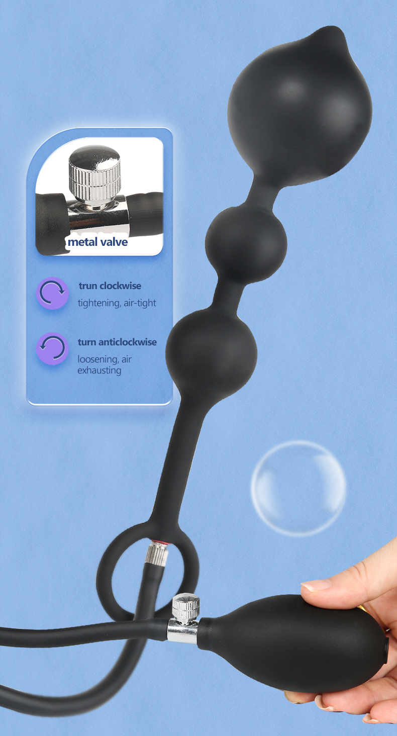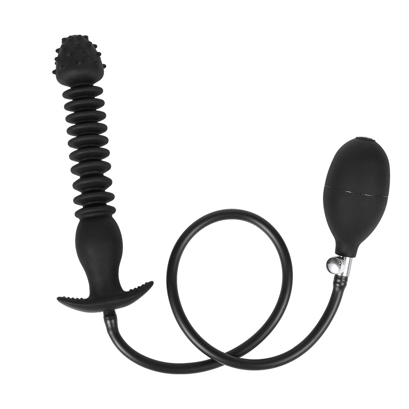 Plug inflável com formatos sanfonado, com cabeça com cravos, formatos de contas finas ou grossas de silicone. Após estarem cheios, o plugs crescem muitas vezes o seu tamanho inicial dentro de você. Indicado tanto para homens quanto para mulheres que querem exercitar ou praticar experiencias anais dilatadoras. imagine a pressão interna que isto pode fazer. Sabe como uma maça medieval funcionava? Aquela quebrava crânios, estas aqui vão alargar seu anus.