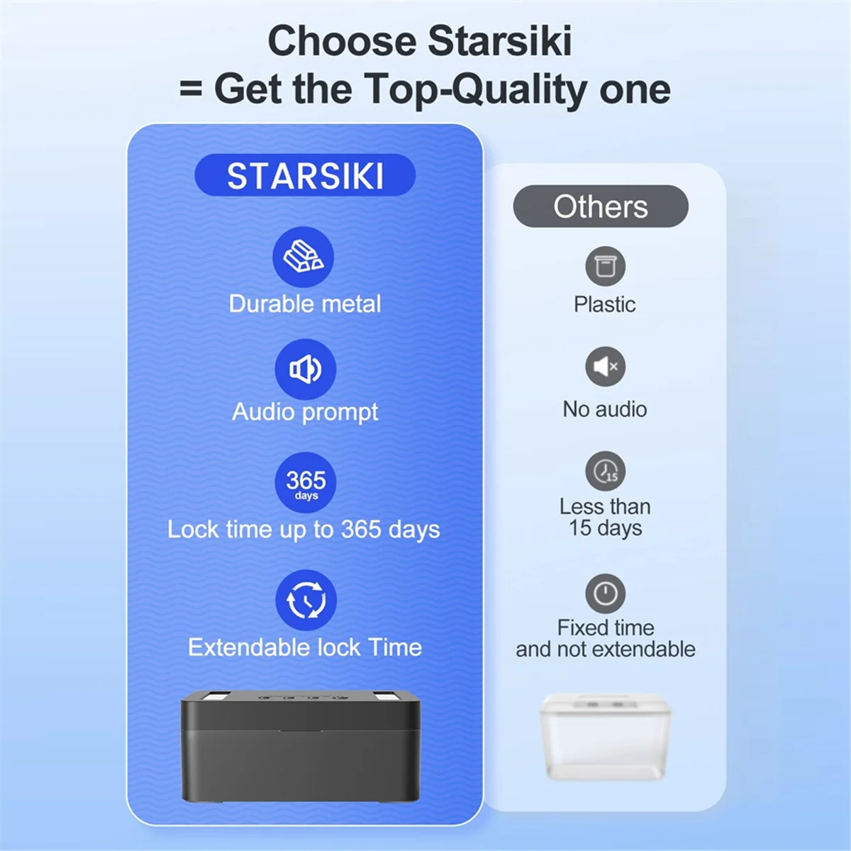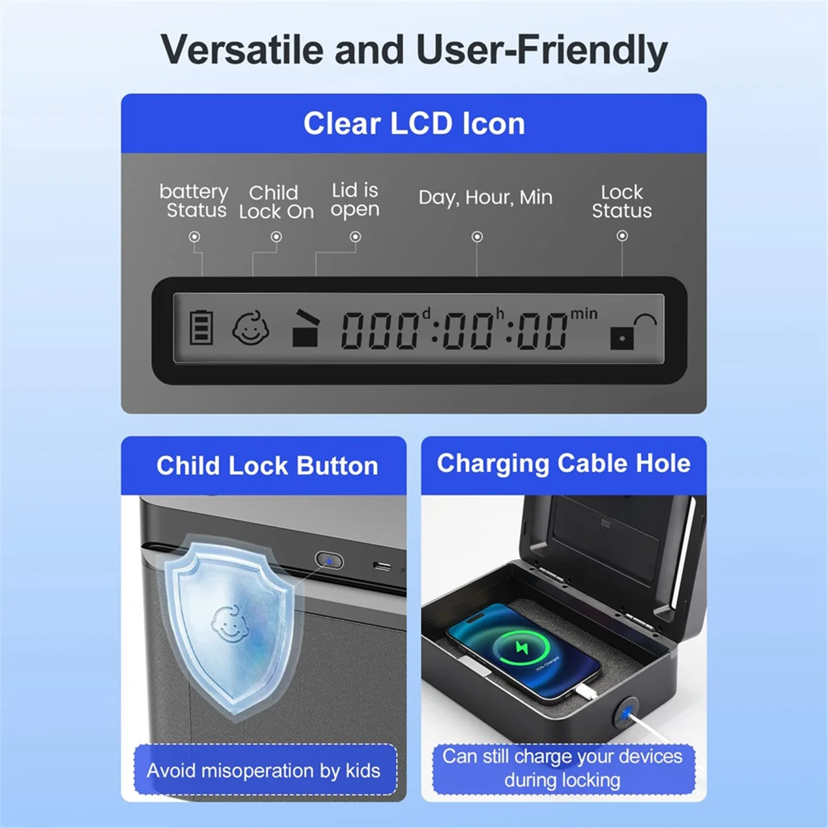 O temporizador embutido permite programar o tempo de liberação com precisão, promovendo sessões de castidade mais intensas e seguras. Além disso, o compartimento metálico oferece resistência e segurança, dificultando tentativas de abertura precoce.