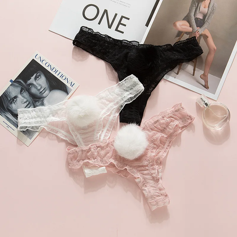 Calcinha Renda Rabo de Coelho Pompom Bunny Tail Panties: Adicione um toque lúdico e sedutor ao seu guarda-roupa íntimo com esta peça que combina a elegância da renda com o charme divertido de um pompom de coelho, tornando-a perfeita para momentos especiais e surpreendentes.Características: