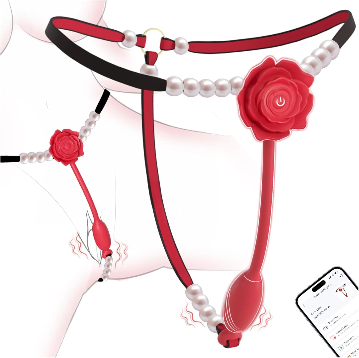 Calcinha Vibratória Tanga Rosa Pérolas Rose Pearl Thong