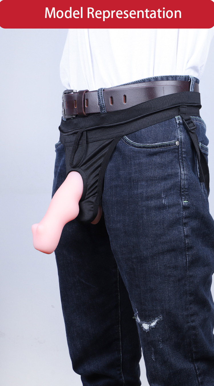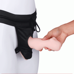 A base deste produto tem formado de vagina, com pequenos lábios e uma grande base de até 14,5 cm de altura. Além disto, o conjunto também envia uma cinta para suporte da manga de TPE. Isto vai garantir a firmeza da manga enquanto seu pênis penetra seu par, sem que a capa saia a cada movimento.