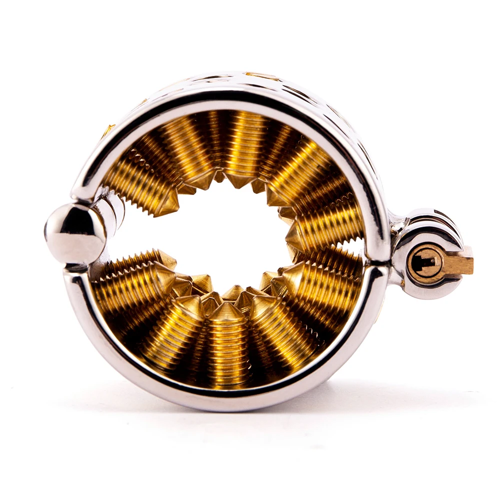 Projetado para quem deseja explorar novas sensações e desafios no universo do Cock and Ball Torture (CBT), o Metal Ball Stretcher oferece peso e pressão precisos para alongamento dos testículos com segurança. Fabricado em metal resistente e polido, proporciona um visual imponente e garante durabilidade e fácil higienização.