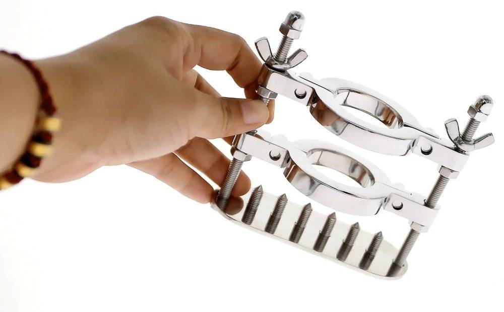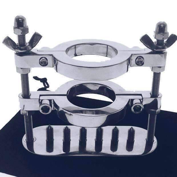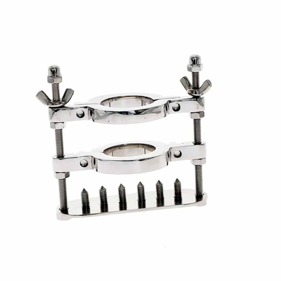 Se trata de ALL-IN-ONE. Este dispositivo irá proporcionar uma verdadeira bola de torturar sensation CBT e será amado por todos os apreciadores de CBT. Esta bola trituradores permitem que você ou o seu parceiro para simplesmente virar as porcas de asa para aumentar o prazer ou a dor, e esticar as bolas como você desire. Os pontos vão ser lentamente adicionando o desconforto durante a desempenhar CBT para. Os picos pode ser reduzido ou aumentado ou removido como você joga para a máxima versatilidade.
