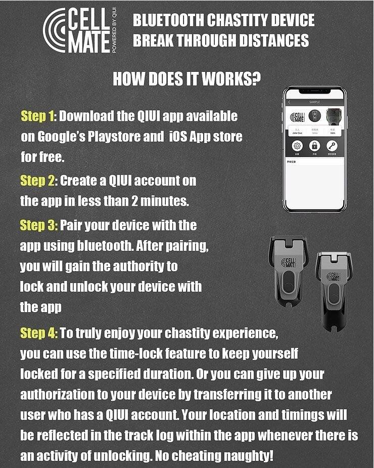 - O primeiro dispositivo de castidade controlado pelo mundo. Com o dispositivo de castidade CellMate, não importa onde você está ou o que está fazendo. Você, como o mestre das chaves, tem o poder de decidir se sua submissão pode ser destrancada da sua castidade.