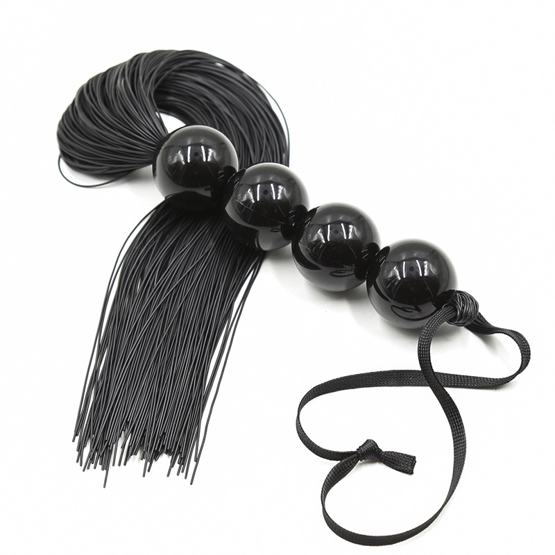 Chibata média com tiras lisas de silicone. Cabo bonito de contas.