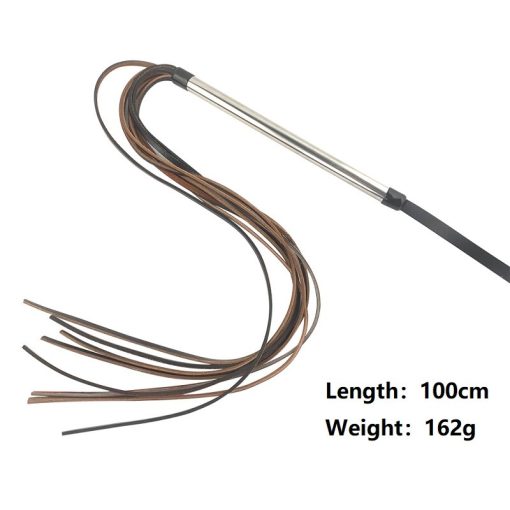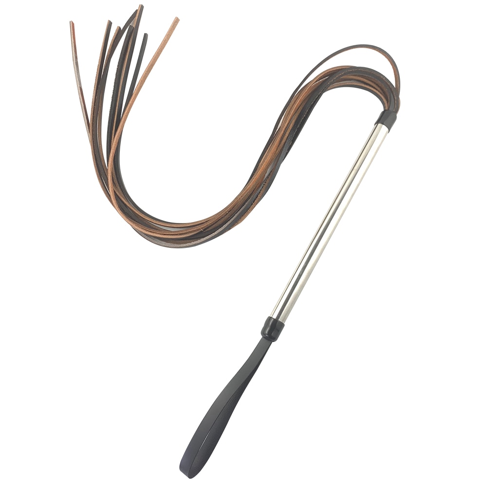 Chibata enorme com tiras de couro genuíno , grossas e pesadas. Cabo metálico.