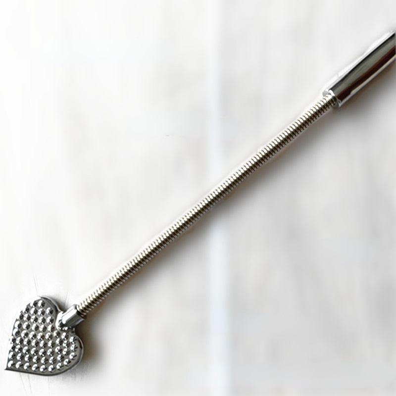 Chicote polido e com brilho prateado. Acerte cada golpe como um verdadeiro governante de mão de ferro. Aço, no caso. Cada golpe vai interagir com o cabo de mola, podendo tanto amortecer os impactos, quando aumentar a velocidade deles. Este chicote é pesado e pode machucar.