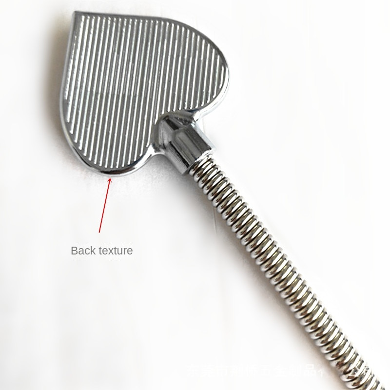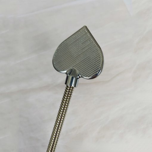 Modelo de relho do tipo chicote alongado, com formato de coração. Feito totalmente em aço.