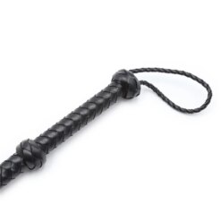 Chicote de Couro com Alça Longa e Fio de Prata – Dominação com Estilo e Alcance