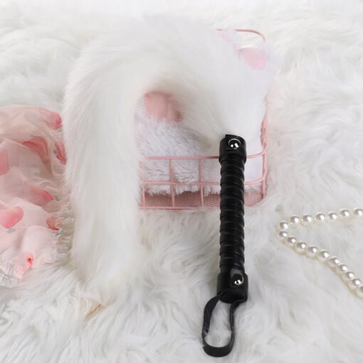 Chicote de Couro com Cabo de Rabo de Raposa Leather Handle Foxtail Whip: Liberte seus desejos mais selvagens com este acessório que combina sofisticação e intensidade, unindo a firmeza do couro em tiras bem trabalhadas com a suavidade irresistível de um rabo de raposa no cabo.