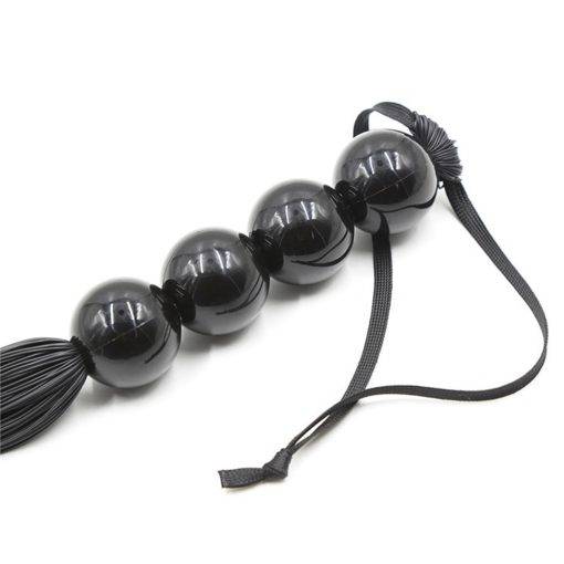 O cabo também possui superfície lisa e brilhante. Se não fossem pelas partes com nós na ponta do cabo, este chicote até serviria como um bom plug anal beads se usado com camisinha.