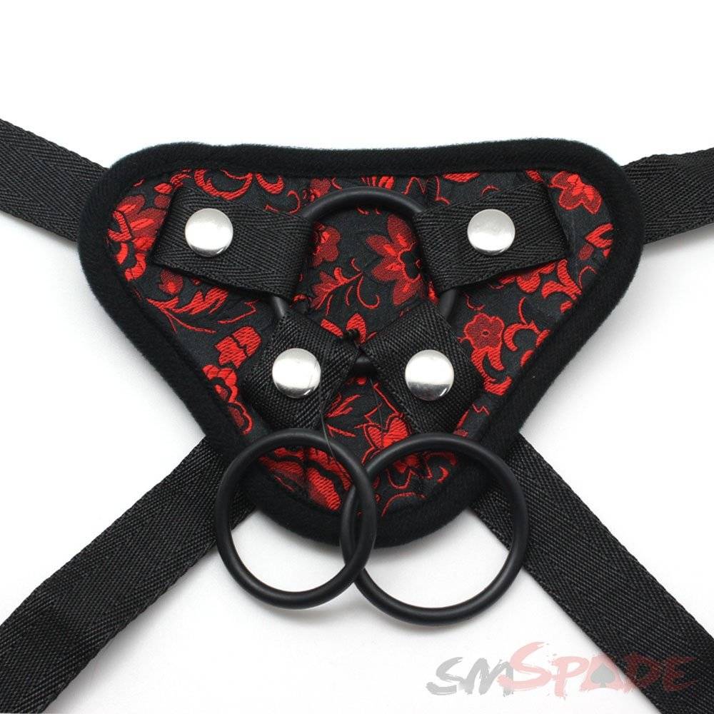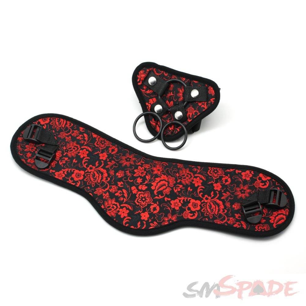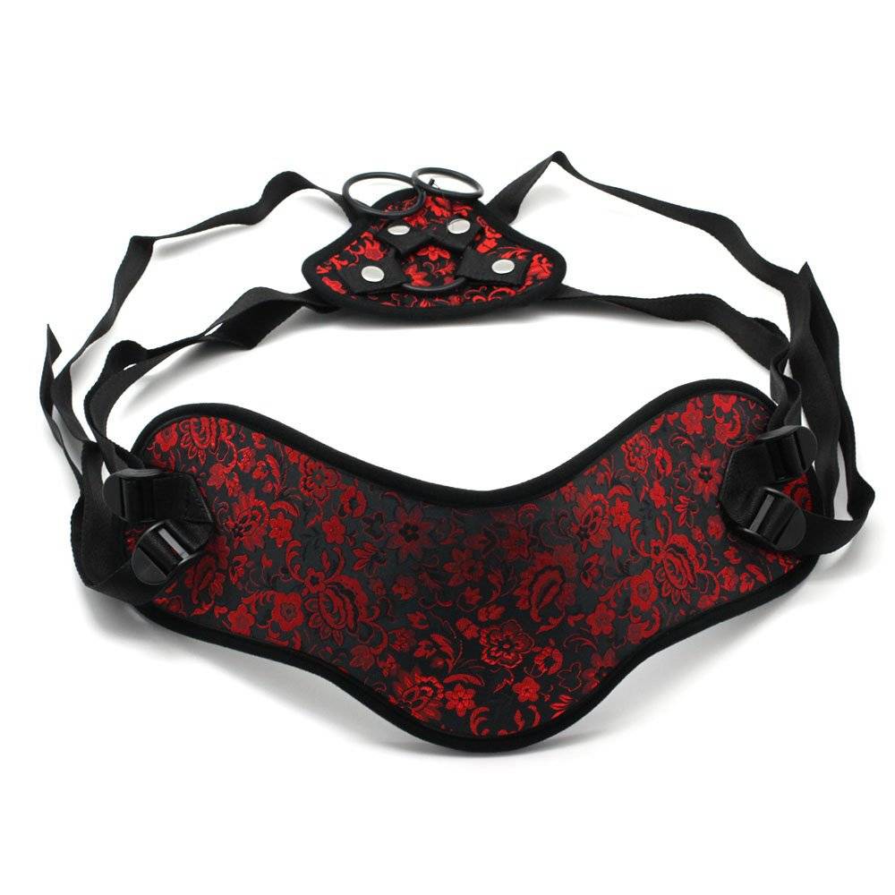 - Cinta peniana strapon modelo de luxo estilo renascença com detalhes floridos em vermelho
