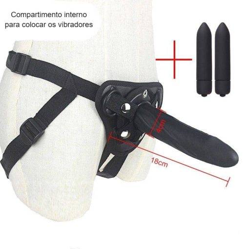 Cinta Peniana Strapon Pênis 18 cm + 2 Vibradores Bullet