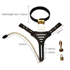 Possui sistema de fechamento por cadeado e correntes nas costas. Faça questão de regular com firmeza o cinto de castidade. Não queremos nenhuma jogada de lado de calcinha ou do cinto. Isto é importante para mulheres com apetites sexuais vorazes. Isto fica ainda mais certo quando você insere o plug de metal parafusável na base da cinta. O plug ficará firme na vagina ou ânus da sua parceira.