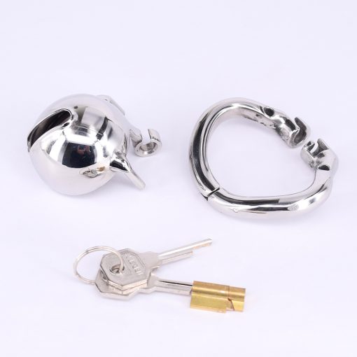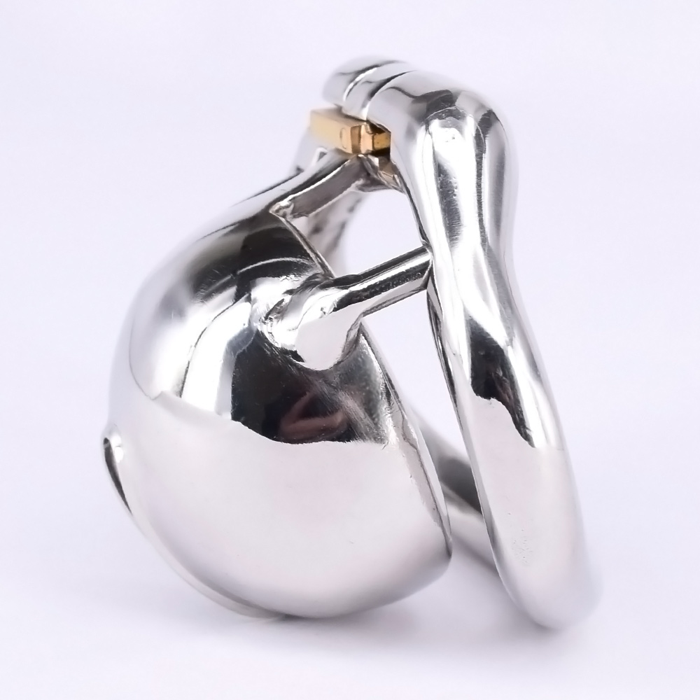 Gaiola de castidade de tamanho único pequena, com 4 anéis de base opcionais. É um modelo de cinto com gaiola de domo e anéis metálicos anatômicos capaz de cobrir muito bem e prevenir quase qualquer contato com o pênis. Redondo como uma cúpula de domínio e liderança. Domine e governe esta vontade.