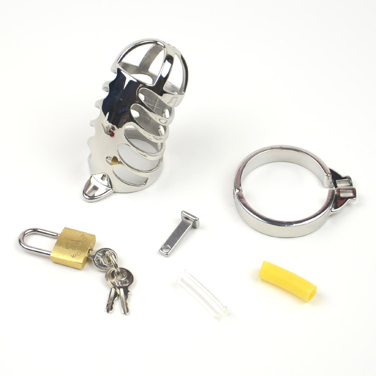 Feito em aço inoxidável. Pode ser molhado e lavado facilmente. Não possui suporte para tubo de cateter. Treine com paciência e você conquistará este domo. O cinto ainda tem proteção de silicone para te proteger da dobradiça do anel.