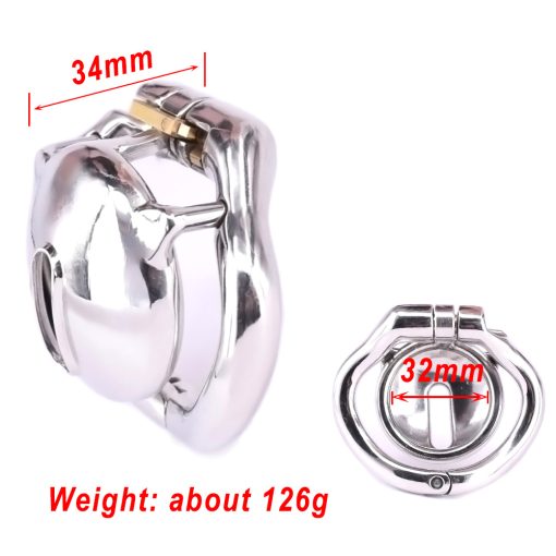A gaiola possui tamanho aproximado interno e curvado de 1,2 cm de altura. É um produto discreto e permite o uso nas atividades comuns do dia-a-dia. O tamanho total de comprimento do cinto é de 3,4 cm da base do anel até a camada externa do domo. Tamanho micro.
