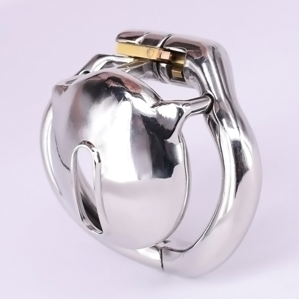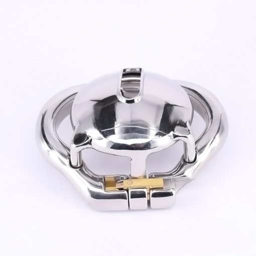 Cinto de castidade micro com domo metálico vazado. Travas por cilindro.