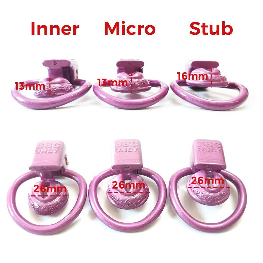 Gaiolas de castidade de tamanhos únicos Nub e ainda menores, com 4 anel de base inclusos. São modelos de cinto compactos, pesando aproximadamente 80g de puro ABS rosado. Possuem aberturas para passagem de líquidos, caso haja a necessidade de urinar durante o uso. Podem ser molhados.
