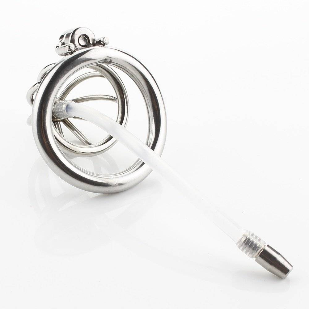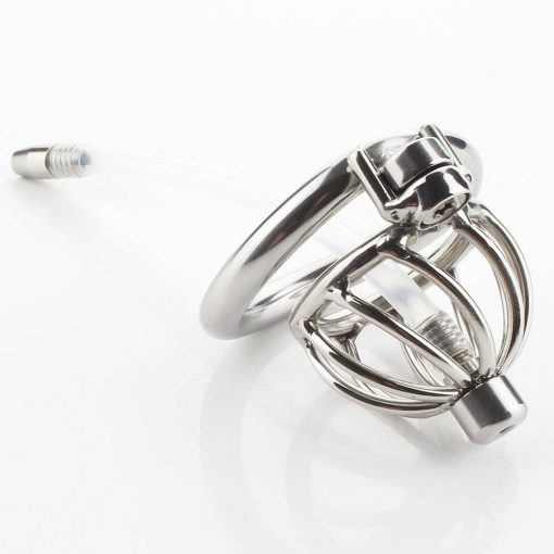 Cinto de castidade em liga inoxidável e com sistema de tranca muito resistente. Com cateter uretral incluso.