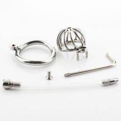 Esta gaiola peniana vem com sistema de fechamento em parafuso, o que a torna extremamente firme. O parafuso tem um encaixe para chave do tipo pentalobe, garantindo uma vida útil extensa. O cateter tem grossura inserível de até 0,8CM. O comprimento da gaiola é de cerca de 4,5CM e o raio interno é de cerca de 3CM.