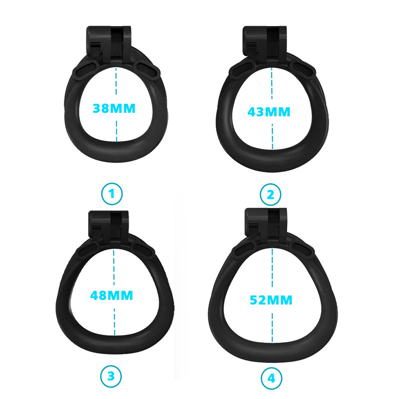 As medidas do produto competem o tamanho dos anéis e da gaiola. Os anéis de base têm o seu diâmetro de 3,8 cm, 4,3 cm, 4,8 cm e 5,2 cm de diâmetro. Tem para todos os tamanhos pequenos, médios e grandes. Cada anel possui formatos arredondados para maior conforto.