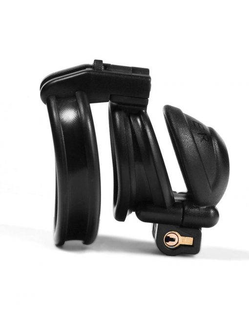 Novo design com fechadura na parte da frente do cinto de castidade masculino que permite remover a tampa da gaiola, facilitando a limpeza e negando a remoção do dispositivo de castidade sem abrir o outro cadeado que prende a gaiola ao anel
