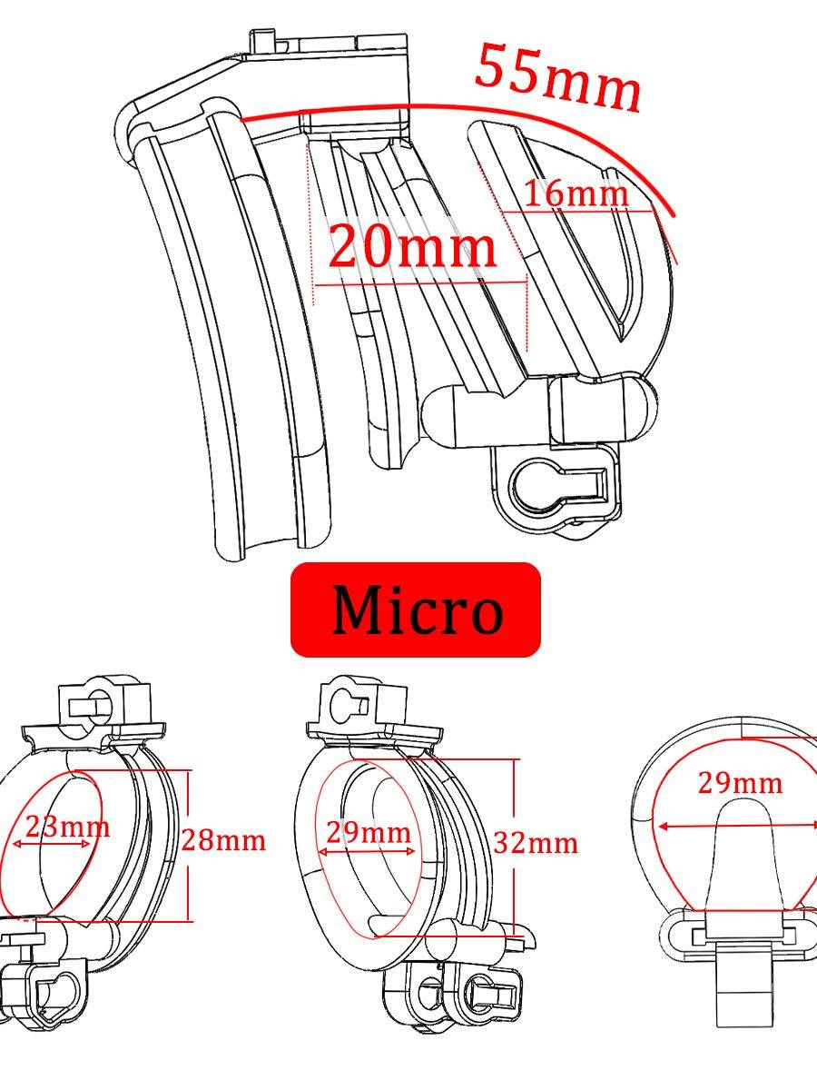 As gaiolas Orion Micro e Short são para clientes com comprimento mínimo de pênis (medido atrás da glande enquanto flácido) entre 32 mm e 70 mm.